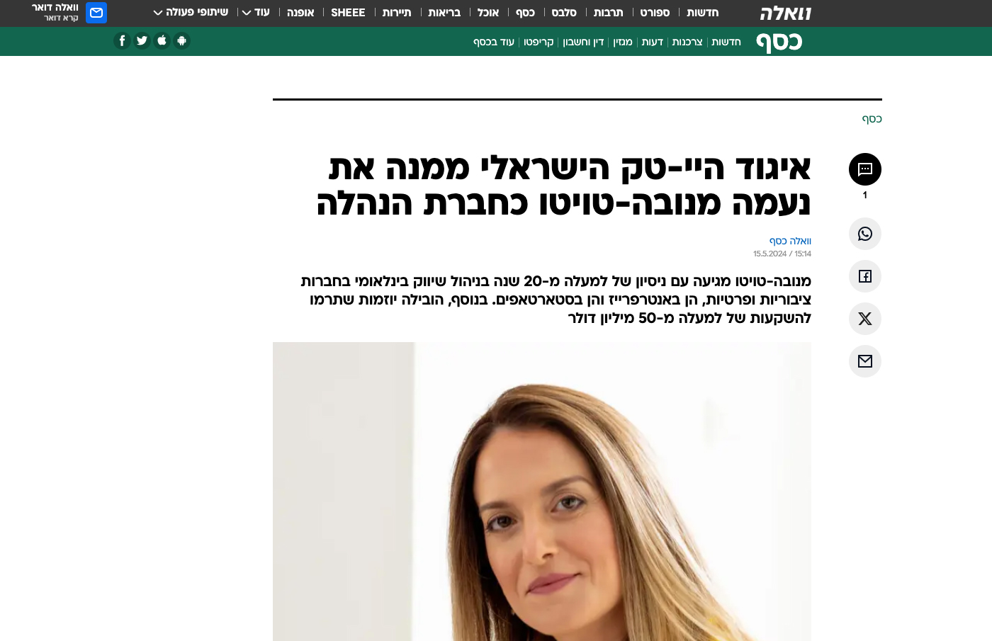איגוד היי-טק הישראלי ממנה את נעמה מנובה-טויטו כחברת הנהלה